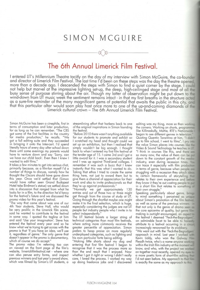 Article in Limerick’s Fusion Magazine » Fusion Mag April 2015 1