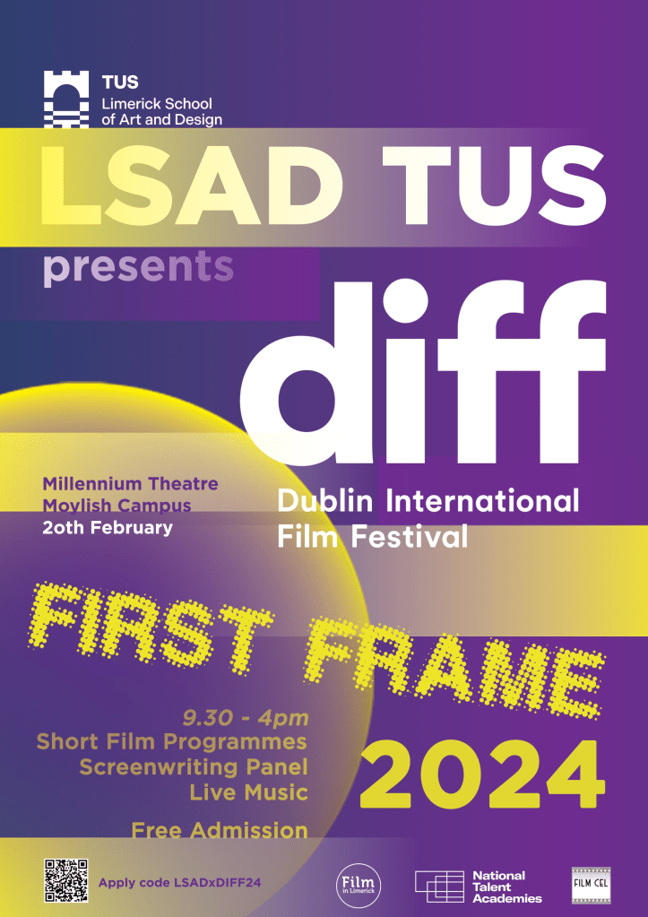 DIFF First Frame 2024 student awards special screening, industry panel and live music on February 20, TUS Millennium Theatre, Limerick.