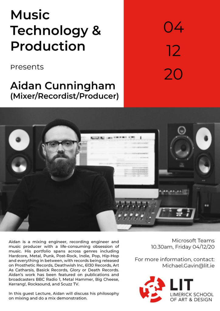 Pleased to announce the following guest lecture with Aidan Cunningham. Please note that this will take place on Microsoft Teams from 10.30 – 13.00, Friday 4th December. There will be a follow up with the link mid next week. This is open to all LSAD students and staff, present and past.