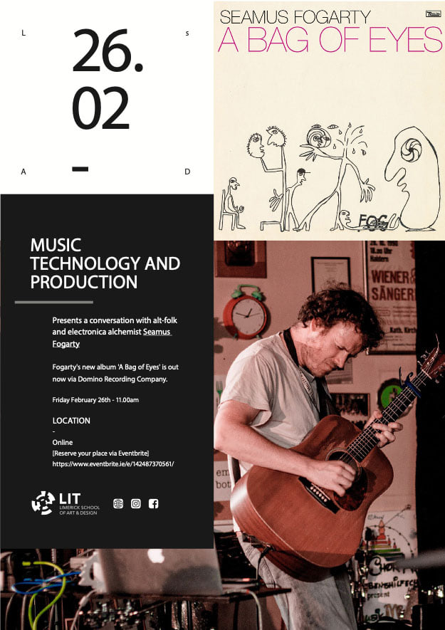 Seamus Fogarty is a London-based Irish singer-songwriter. Combining alternative, folk, and electronica styles, Seamus released his 3rd album, A Bag of Eyes (via Domino Recording Company) on November 6th 2020.