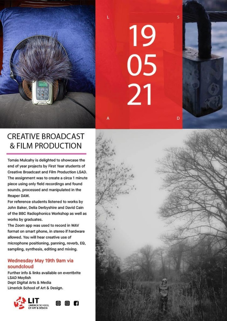 Tune into some amazing Soundscapes brought to you by Creative Broadcast & Film Production first year Students lead by Tomás Mulcahy, Sound Designer, Composer & audio lecturer.