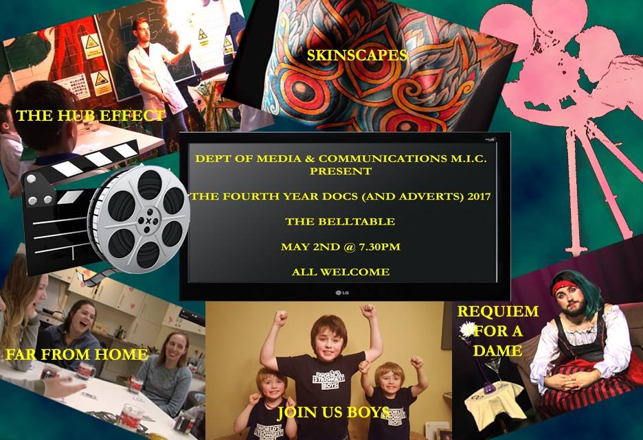 Posted: May 2, 2017 in Cameras, Documentary, Editing, Film, Filming, live Event, mediaTags: Belltable, Dept ofMedia & Communications Mary Immaculate College, Fourth Year Media and Communication Students screening