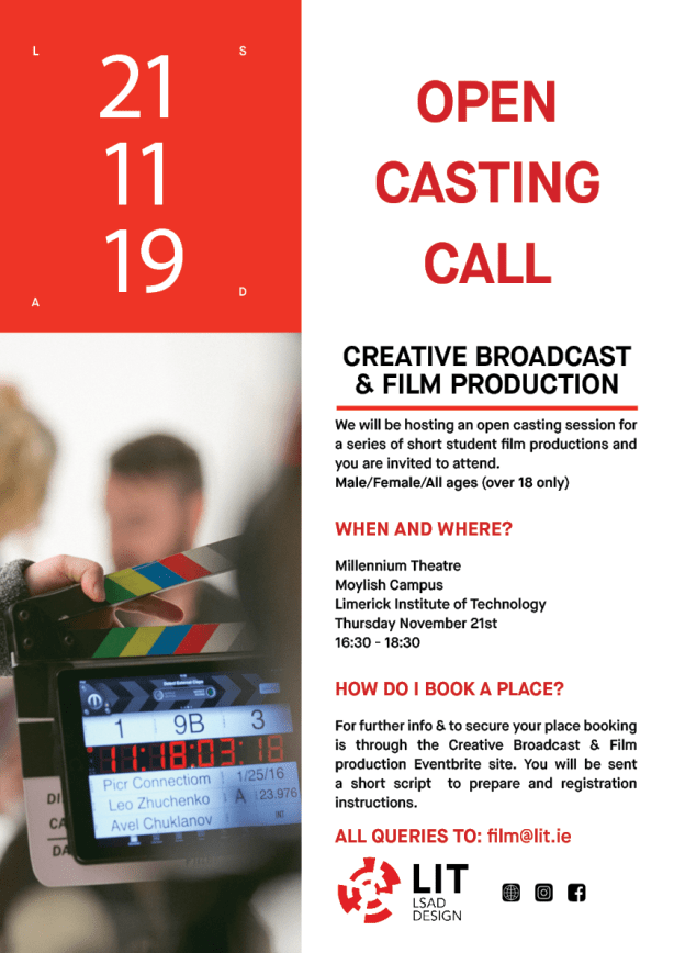 Creative Broadcast & Film Production are pleased to host an open casting call for actors interesting in taking part in a short student film, and or voice over parts. We are looking for males and females of all ages (over 18 only)