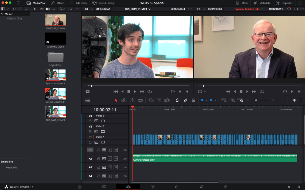 Initial edit timeline of the special interview with Prof. Vincent Cunnane of TUS.