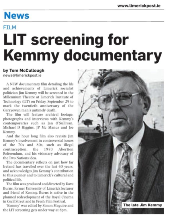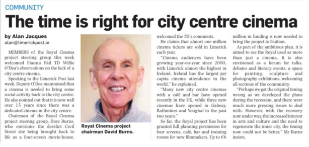 Limerick Leader Article by Norma Prendiville. Documentary celebrates golden era of Limerick cinema – Limerick Leader