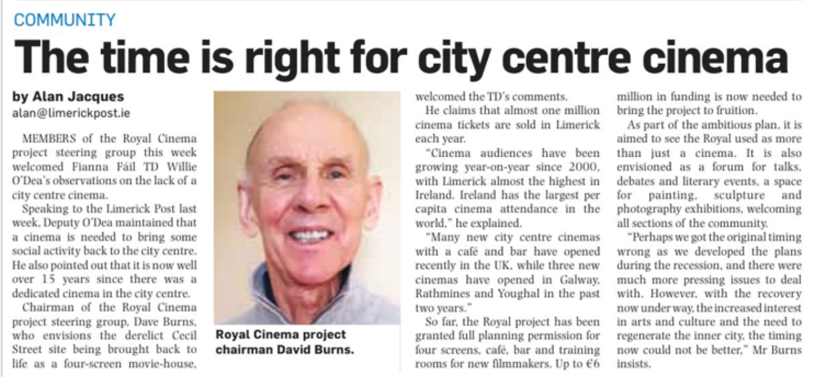 Limerick Post Article by Rose Rush. Documentary on the city’s golden era of cinema