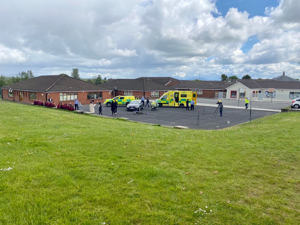 The event on the 19th May 2021 involved the recreation of a serious road traffic collision involving a car and a scrambler motorcycle. Gardaí and Ambulance staff will attend the scene and treat it as they would a similar collision. The event was witnessed by 6thclass students from Corpus Christi School. It was be followed by a discussion on road safety between the students, Advanced Paramedic Keith Mullane and Sgt. Tony Miniter Limerick Roads Policing Unit and then was followed by a launch of the new documentary on the issue.