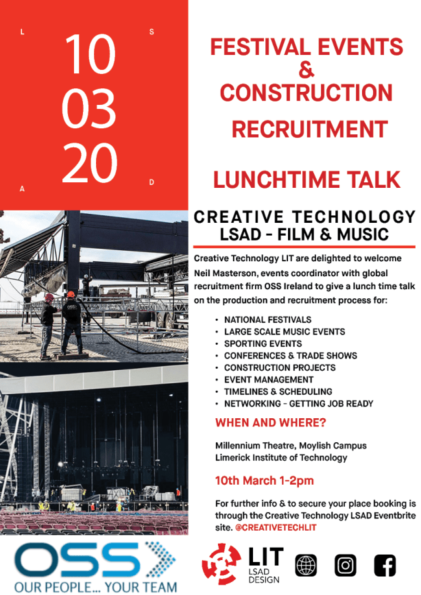 We believe this showcase will be a fantastic opportunity for anyone interested in both Music Production and Technology and Creative Broadcast and Film Production courses at TUS to experience firsthand the variety of projects, skills, and formats students create as part of these courses.