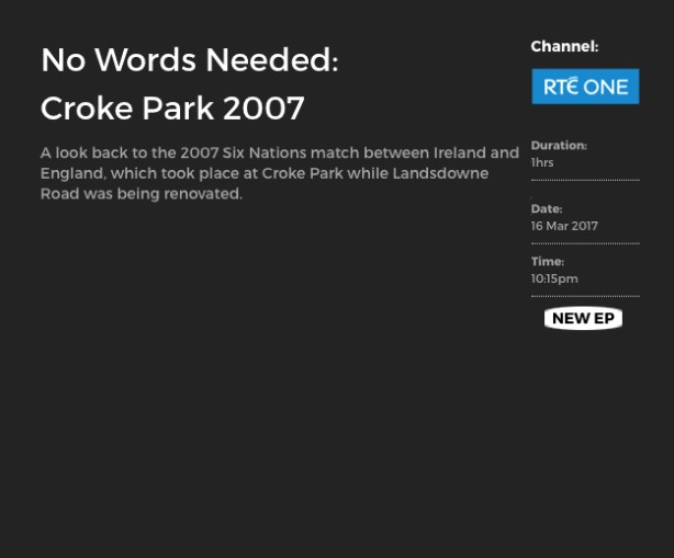 Filmed in Ireland and edited in Limerick with a broadcast date and time of Thursday 16th march at 10:15pm, RTE 1; ‘No Words Needed’: Croke Park 2007, is an hour long documentary reliving the memories of how the doors of the famous venue were opened to Rugby, and that famous match against England for the Six Nations.