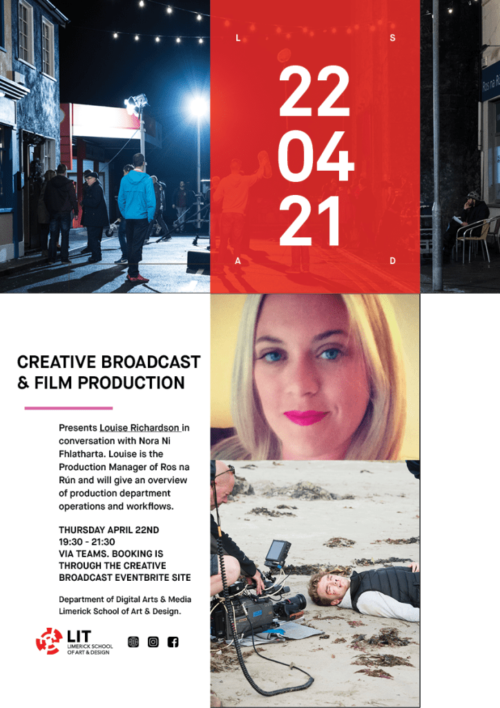 The next industry focus session from the Creative Broadcast & Film Production Programme at LSAD is with Louise Richardson. Louise is the production manager of Ros na Rún