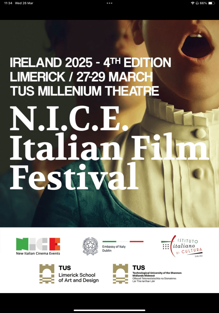 On 27th-29th March 2025, the N.I.C.E. (New Italian Cinema Events) Italian Film Festival will come to Limerick for the first time.
